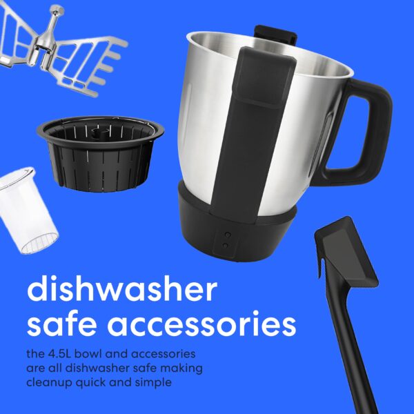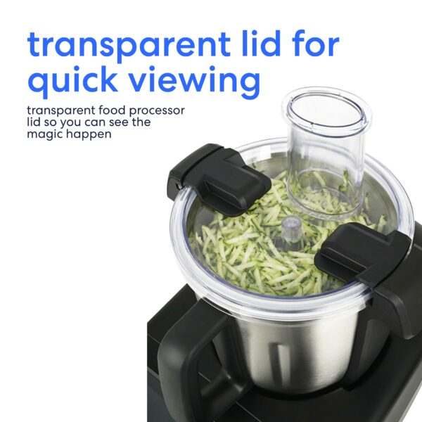 From gentle stirring to full-speed blitzing, this machine’s got the grunt to handle it. The high-performance motor and heating system work together to deliver consistent results, whether you’re making sauces, soups, or dough from scratch. It also features a transparent food processor lid attachment so you can see the magic happen without lifting the lid.