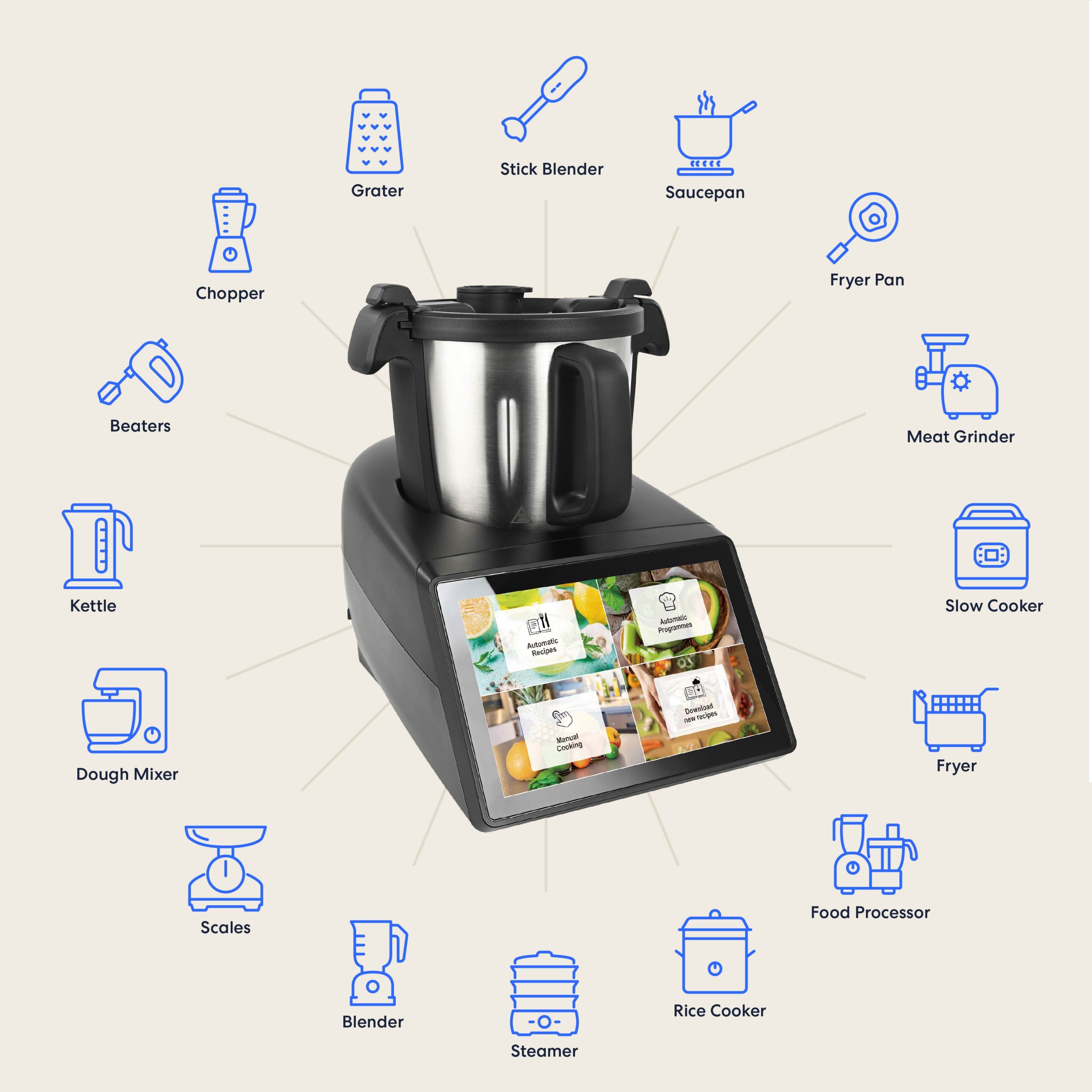 • All-in-one food processor and cooker- Chop, Grind, Boil, Fry, Mix, Steam, Sous Vide, Knead, Heat, Whisk, Weigh