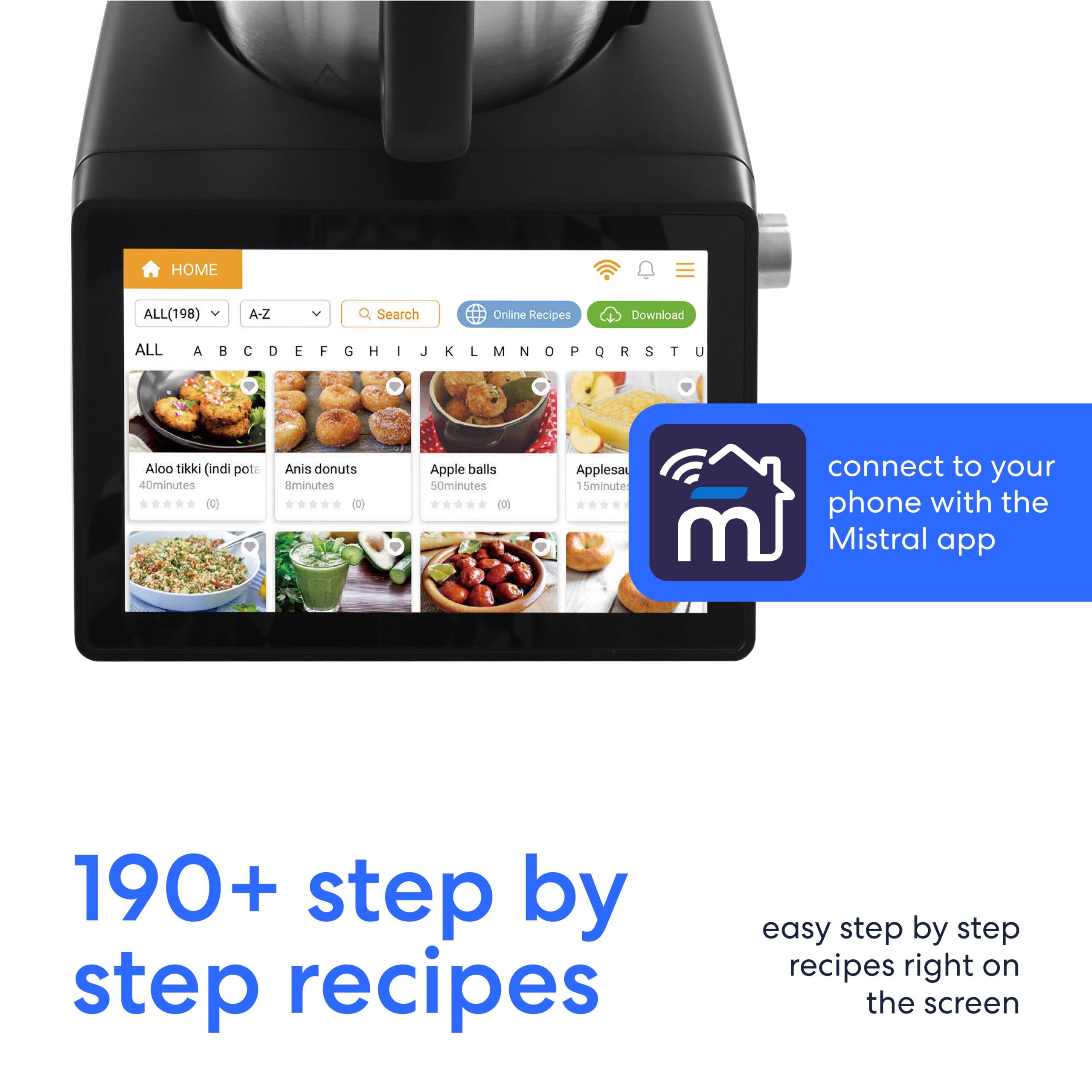 Connect it to WiFi and you’re set. Keep everything in sync with the Mistral Connected app where you can browse recipes, and control it remotely. It’s an easy way to stay inspired, try something new, and keep your kitchen running smoothly without extra effort.
