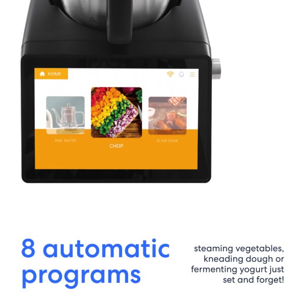 • 8 automatic programs – Boil Water, Chop, Food processor, Knead, Steam, Slow Cook, Weigh
